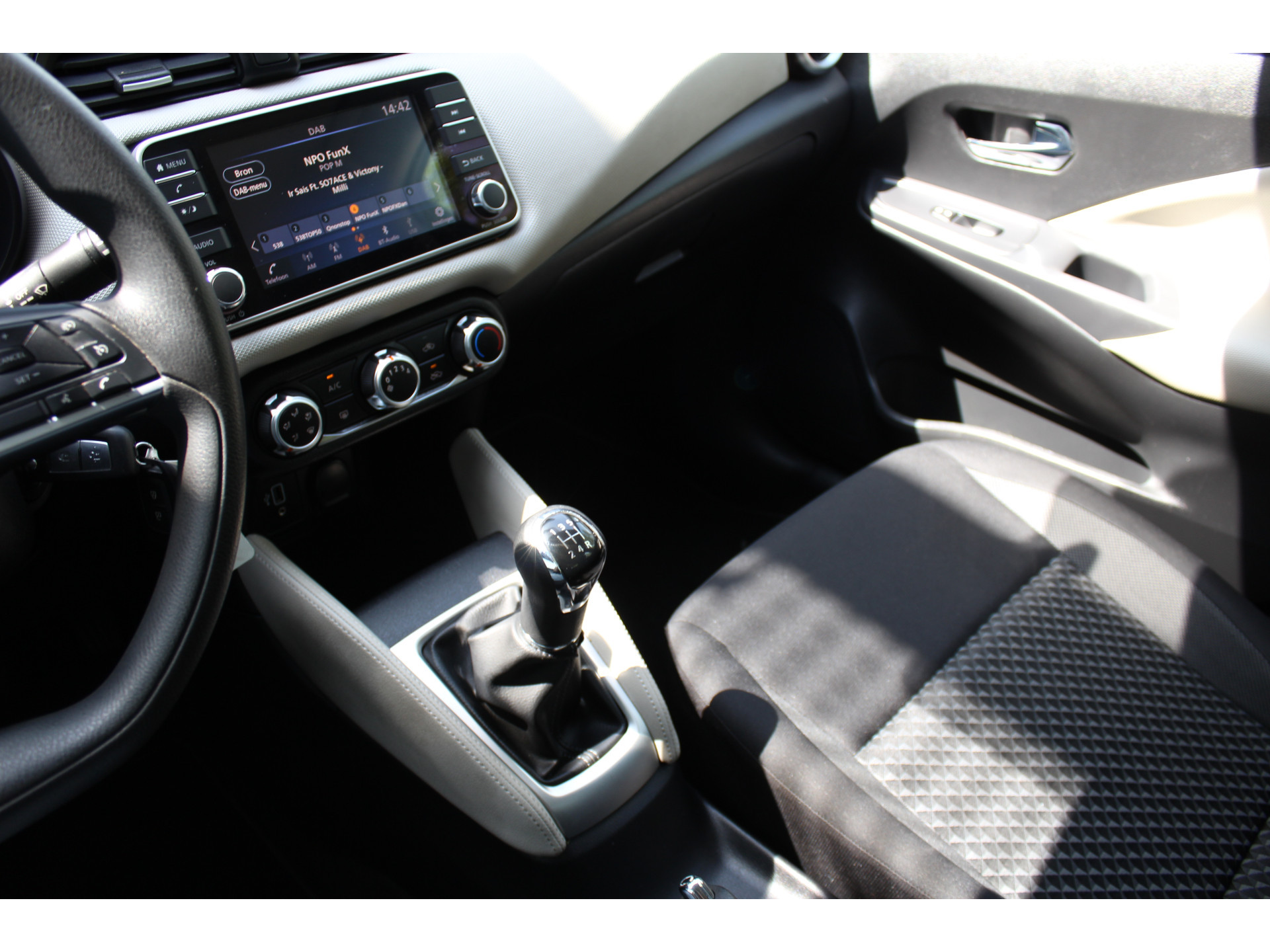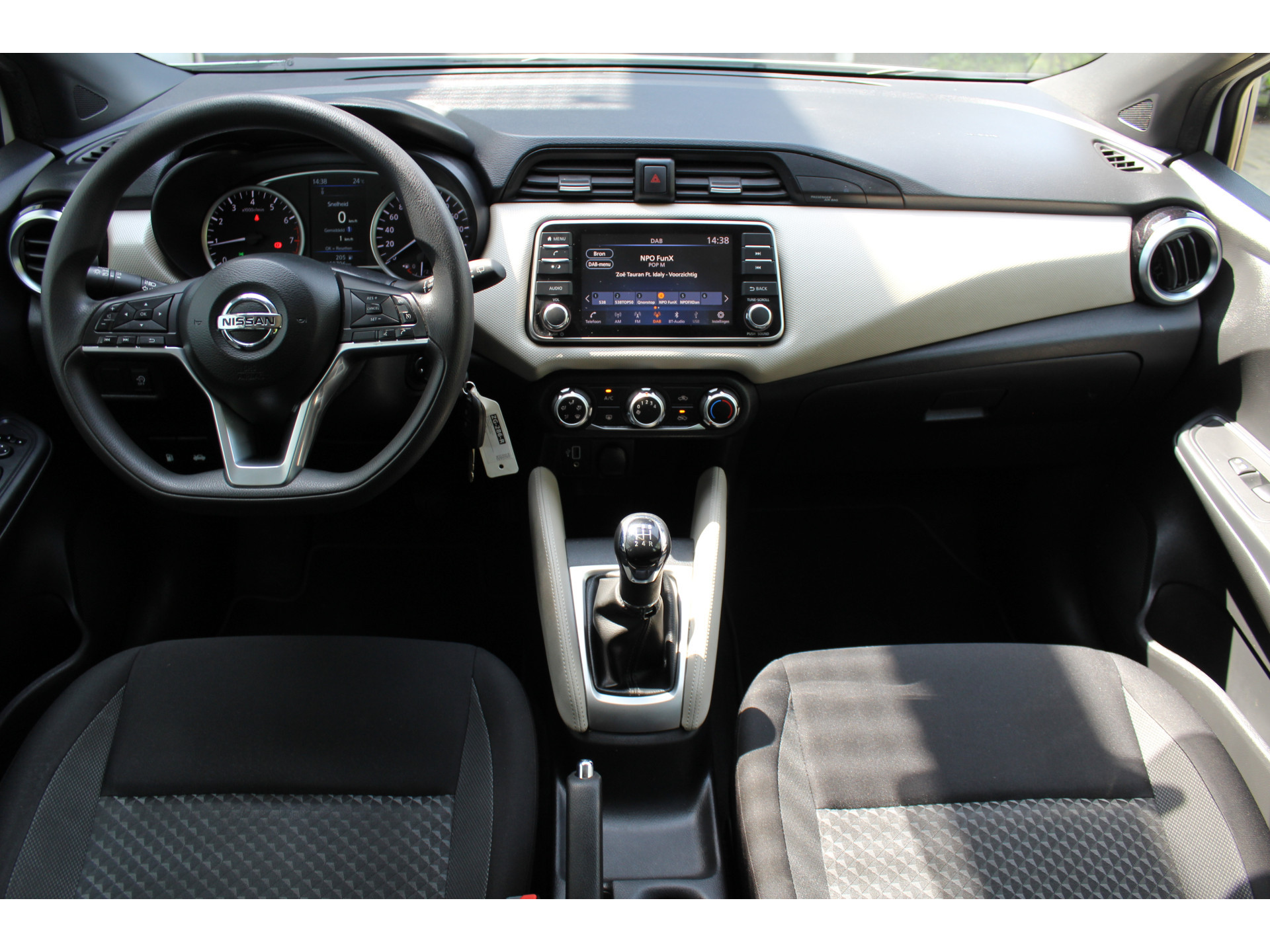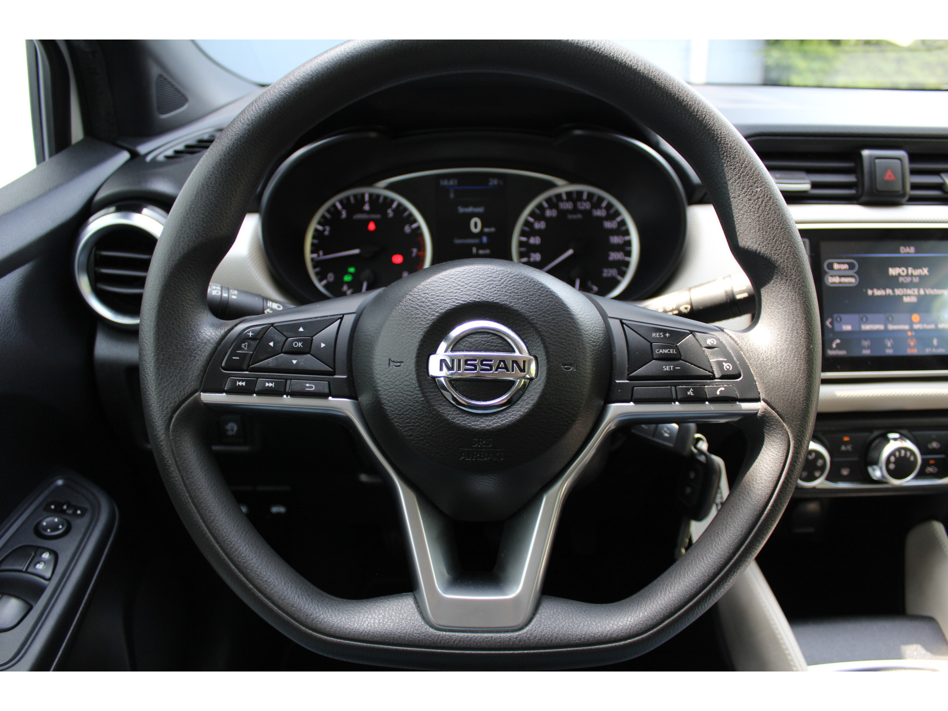 U kunt tijdens de rit uw ogen steeds op de weg houden, want het audiosysteem (met dab!) kunt u bedienen vanaf het stuur. Radarsensoren aan de achterkant van de auto zorgen voor een achteropkomend verkeer waarschuwing als de afstand tot het verkeer achter te klein wordt. De cruise control zorgt voor een prettige, gelijkmatige koers en minder brandstofgebruik. Vanzelfsprekend is deze auto ook van airconditioning voorzien. De uitrusting van deze Nissan is met centrale deurvergrendeling met afstandsbediening, boordcomputer en verstelbaar stuur behoorlijk compleet.