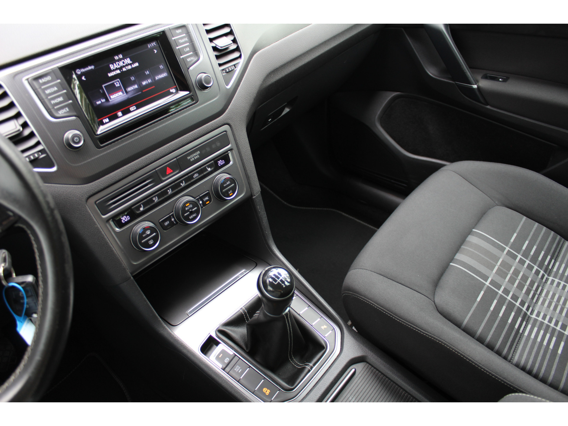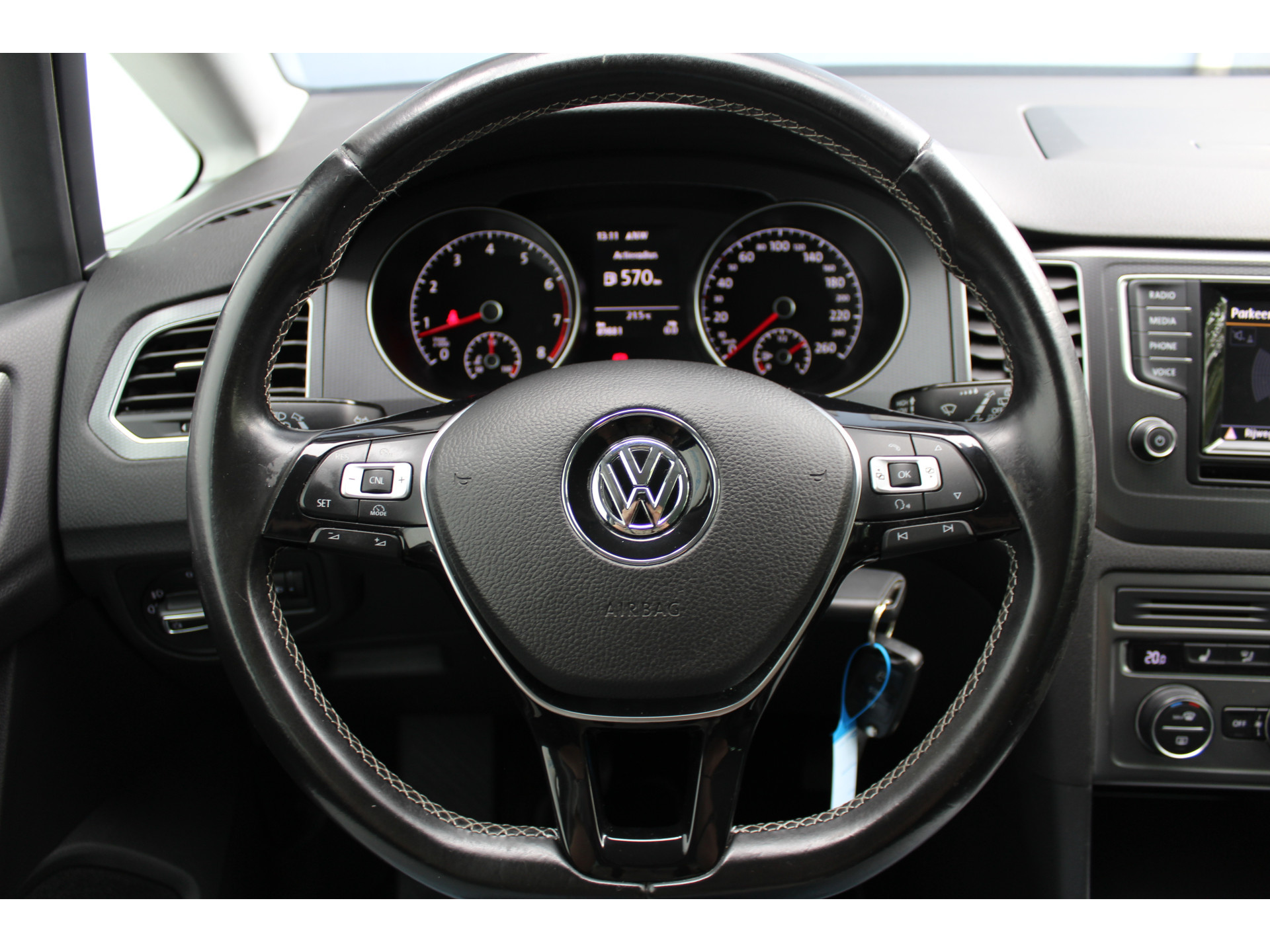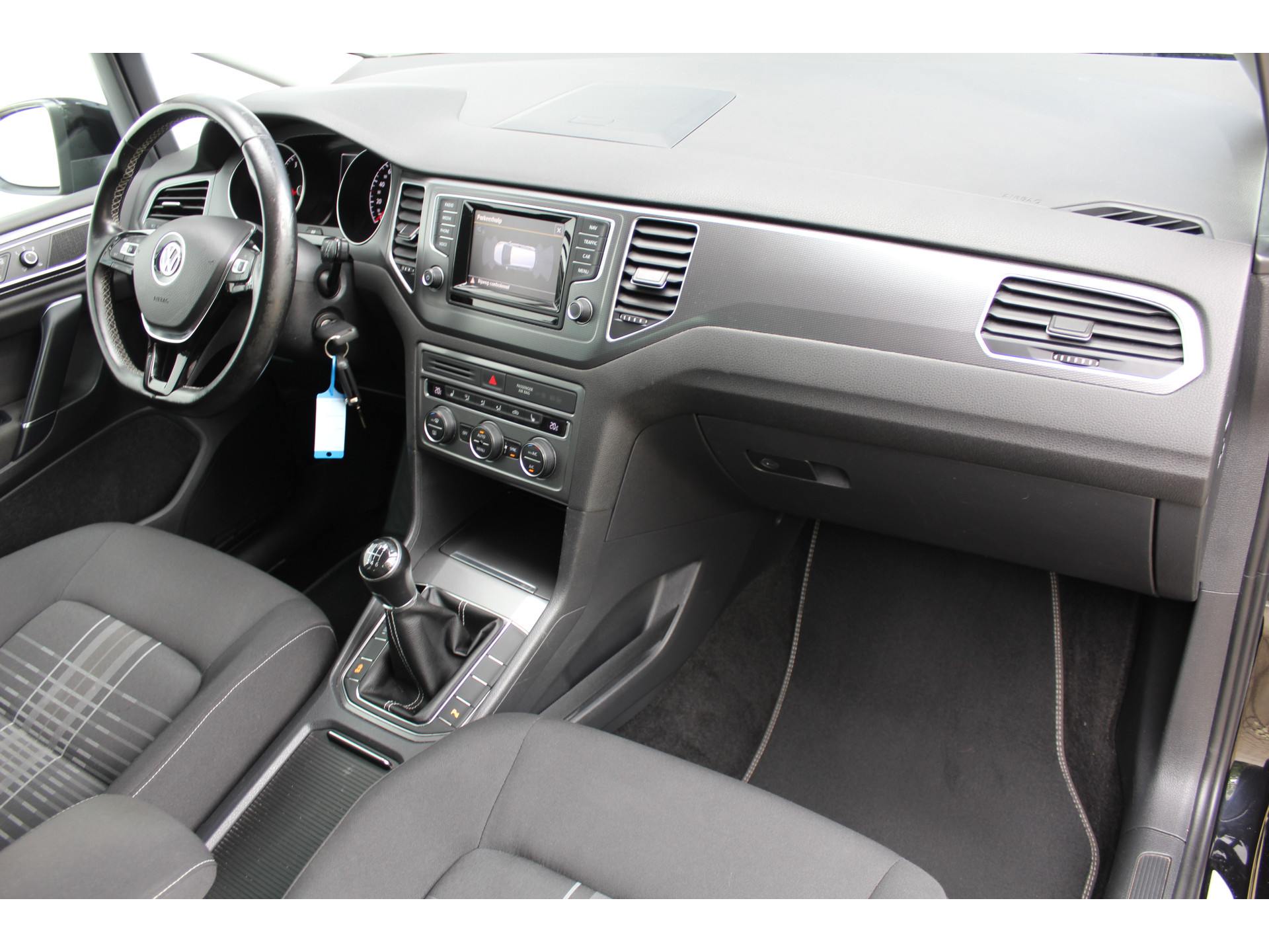 Een belangrijke veiligheidsvoorziening is de bediening van het audiosysteem en het full map navigatiesysteem via knoppen op het stuur. Ook is de auto voorzien van electronic climate control. Boem is ho? Niet bij deze Volkswagen Golf Sportsvan. De piepjes van de parkeersensoren waarschuwen u op tijd voor obstakels. Het drukke verkeer eist onderweg al uw aandacht op. Daarom is het goed dat deze Volkswagen is voorzien van diverse systemen die u assisteren tijdens de rit. Een automatisch inschakelbare verlichting neemt het waar als het donker wordt of gaat schemeren, en schakelt dan automatisch de verlichting in. Op dezelfde manier "ziet" de regensensor de eerste spatjes regen en schakelt dan de ruitenwissers in, en als het harder gaat regenen zet hij de ruitenwissers ook in een snellere stand. Er is cruise control aan boord, voor veilige en zuinige kilometers. Deze auto is voorzien van automatisch dimmende binnenspiegel, lederen stuur en versnellingspook, centrale deurvergrendeling met afstandsbediening en boordcomputer.