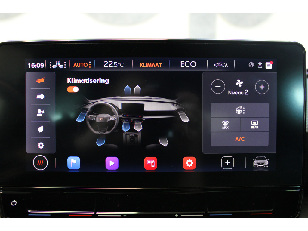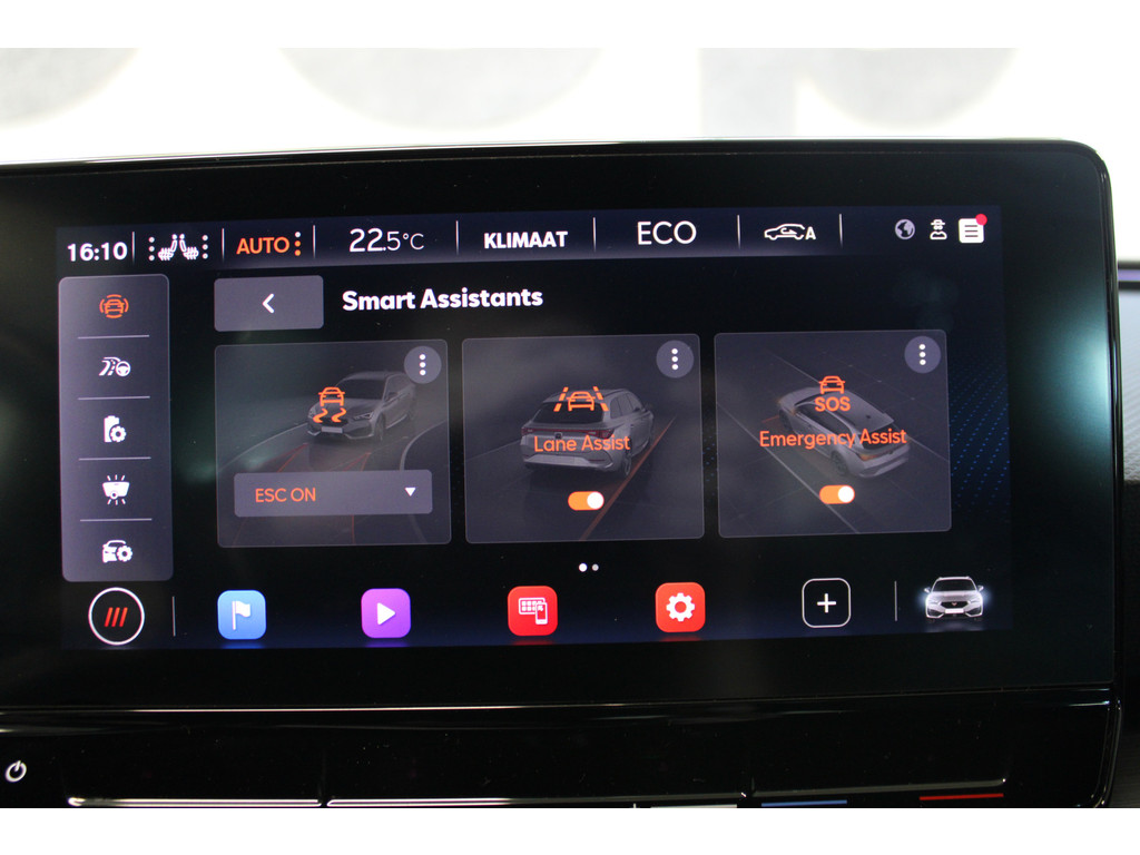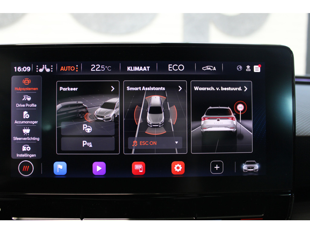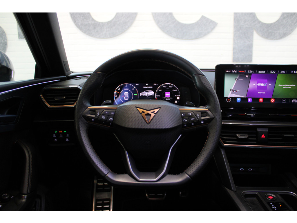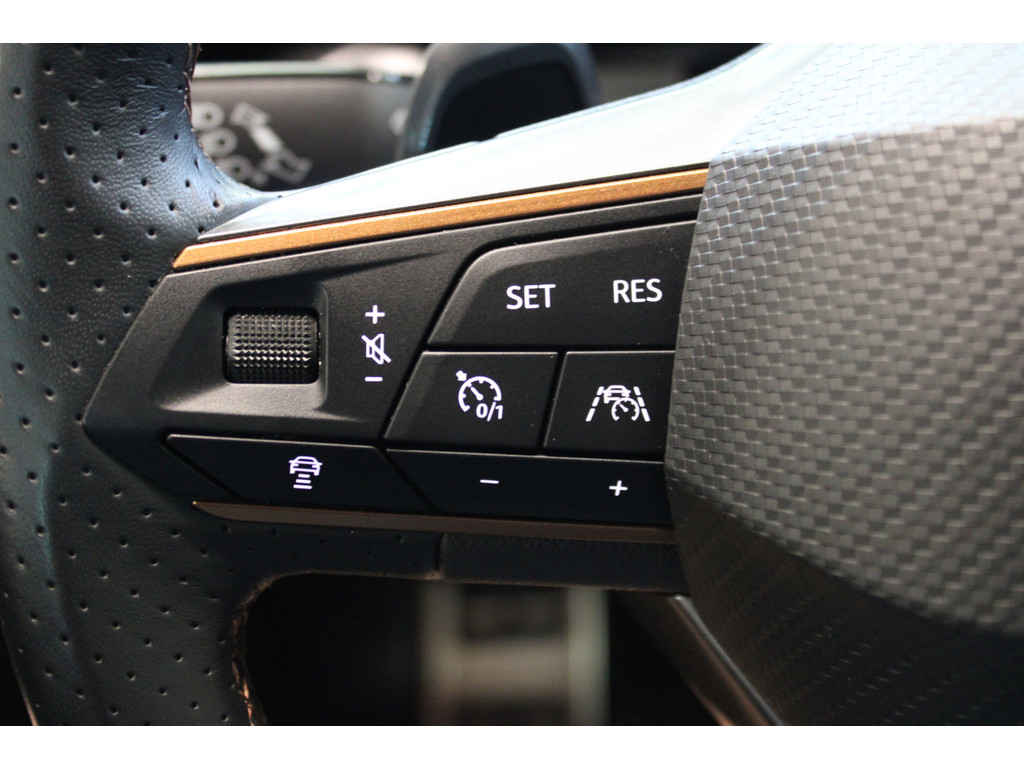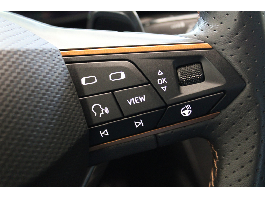 Pragmatisch en veilig als deze auto is, beschikt hij over diverse veiligheidssystemen. Onderweg fungeert de verkeersbord-detectie als het ware als uw bijrijder en attendeert u op de verkeersborden langs de weg. Mooi binnen de lijnen van de rijstrook blijven? Het Lane-keeping systeem helpt altijd een handje. Forward collision warning is een automatisch waarschuwingssysteem dat direct in werking treedt bij gevaar voor een kop-staartbotsing. In deze CUPRA vinden we verder een dodehoekdetectie, hill hold functie, vermoeidheidsherkenning, autonoom remsysteem en bandenspanningcontrolesysteem.