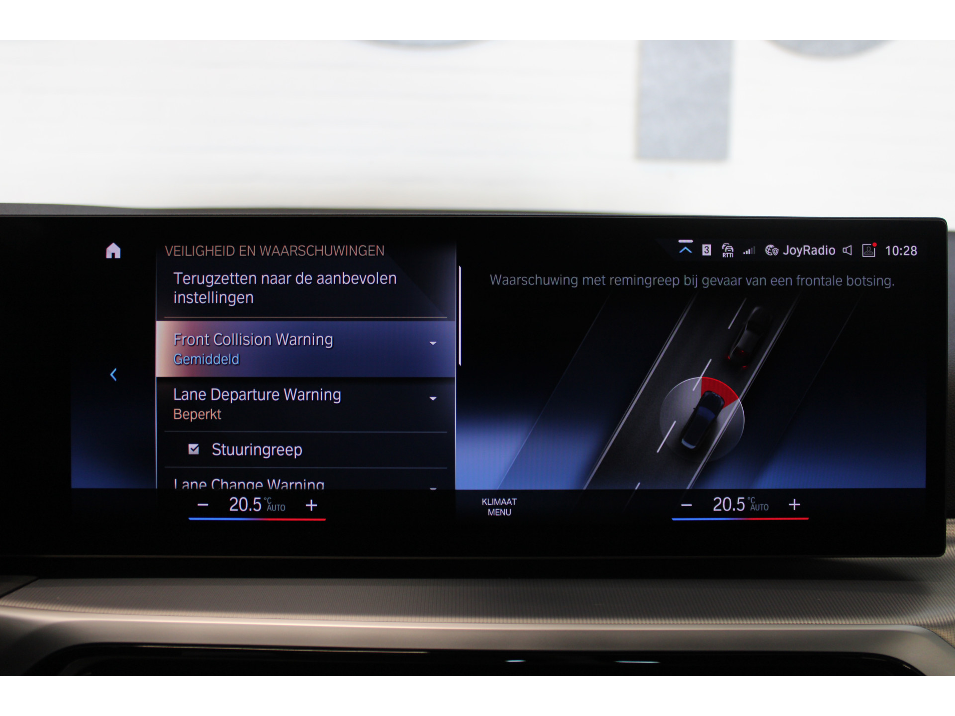 Pragmatisch en veilig als deze auto is, beschikt hij over diverse veiligheidssystemen. Dat de auto steeds meer taken van de bestuurder overneemt, merkt u bijvoorbeeld aan het systeem voor verkeersbord-detectie in deze BMW. Voorzien van het Lane-keeping systeem. Ofwel: blijf automatisch in je baan. Forward collision warning waarschuwt bij een dreigende aanrijding met een voorligger. De veiligheid van deze auto wordt verder verhoogd door dodehoekdetectie, hill hold functie, brake assist, vermoeidheidsherkenning en bandenspanningcontrolesysteem.