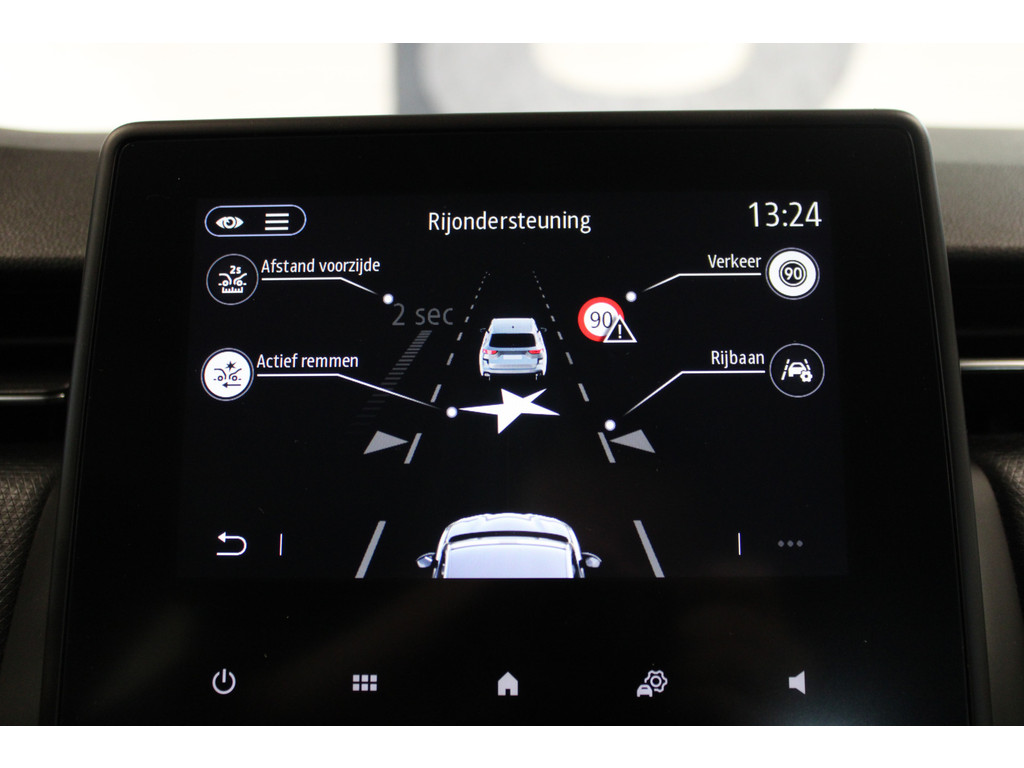 Zoals u mag verwachten van deze Renault Clio is hij uitgerust met een reeks aan actieve veiligheidssystemen. Tijdens de rit hebt u altijd een bijrijder, want de verkeersbord-detectie leest de borden langs de weg en projecteert ze voor u op het instrumentarium. Het Lane-keeping systeem zorgt dat u mooi binnen de lijntjes blijft. Ongemerkt buiten de rijstrook komen is er niet meer bij. Onbedoeld bumperkleven is er niet bij, dankzij de forward collision warning. Die waarschuwt direct als een botsrisico met uw voorligger dreigt. Ook helpen het brake assist en bandenspanningcontrolesysteem, uw rit tot een veilige rit te maken.