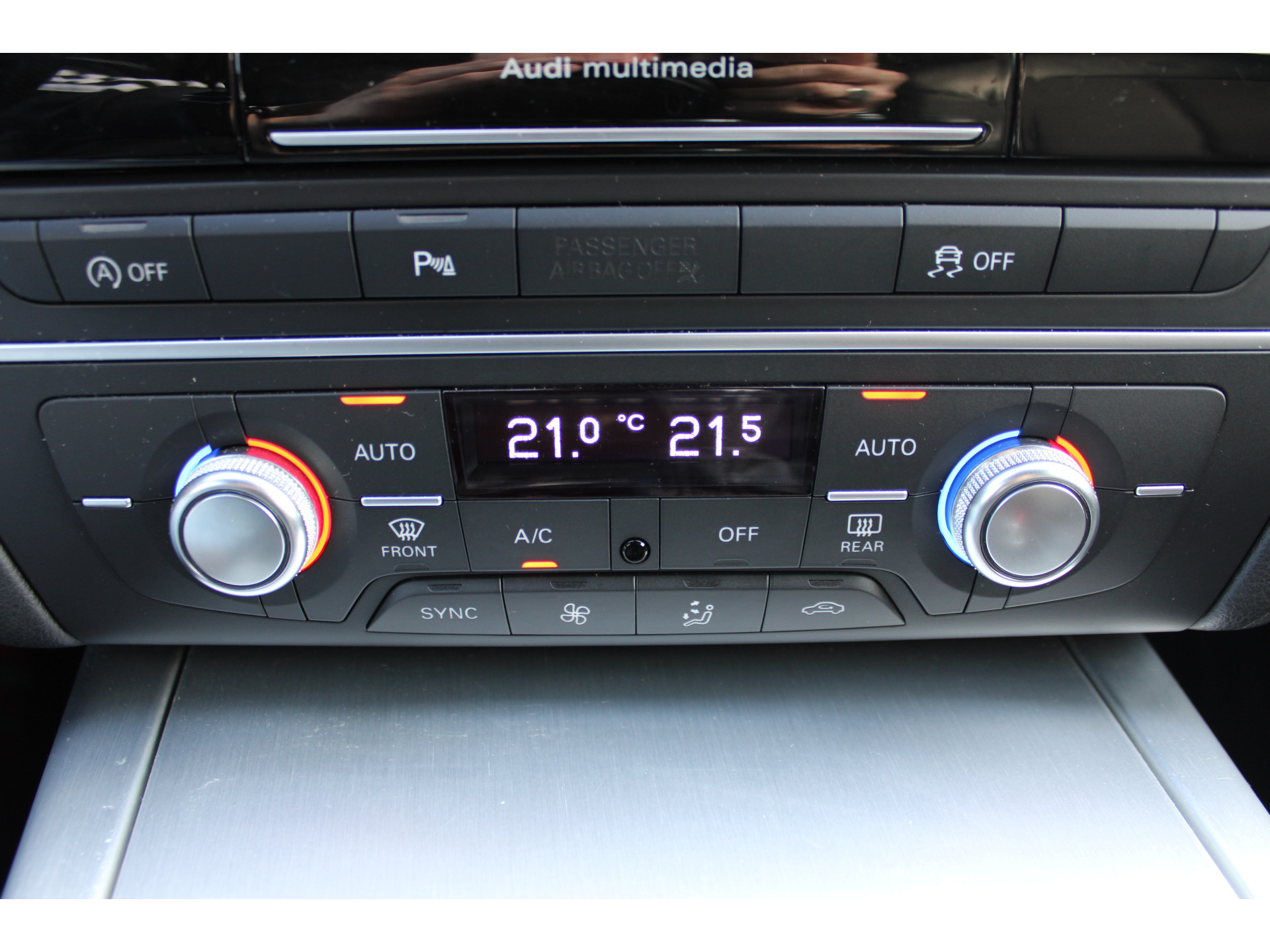 De hoogwaardige achteruitrijcamera en het display met hoge resolutie zorgen dat helemaal niets u meer ontgaat van wat er achter de auto gebeurt. Adaptive cruise control houdt de ingestelde snelheid vast en houdt afstand tot het voertuig voor u. Het navigatiesysteem met harde schijf is uw vertrouwde gids, waarheen de reis ook gaat. De automatische airconditioning zorgt voor een prettige binnentemperatuur. Het audiosysteem laat zich gemakkelijk bedienen met de audiobediening op het stuurwiel. De uitrusting van deze Audi is met regensensor, sportstuurwiel, dvd-wisselaar, automatisch dimmende binnenspiegel, isofix-aansluiting en centrale deurvergrendeling met afstandsbediening behoorlijk compleet.