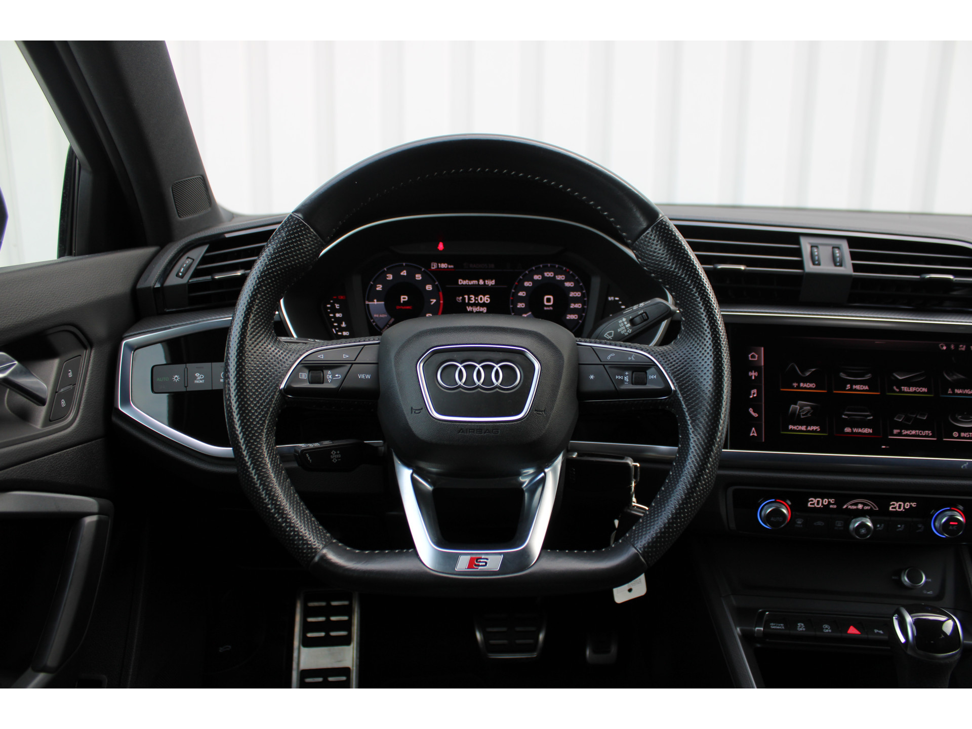 Het digitale dashboard in deze auto maakt personalisatie van uw cockpitinterface mogelijk. Met de achteruitrijcamera ziet u precies wat er achter de auto gebeurt. Navigatie, onderhoudsstatus, vergrendeling, audio... de mogelijkheden van remote services zijn haast oneindig. Ook deze auto laat zich bedienen en analyseren via uw smartphone! Aan boord treffen we een actueel navigatiesysteem met harde schijf en een audio-installatiesysteem inclusief smartphone connectiviteit. Electronic climate control verwarmt of koelt het interieur met een druk op de knop. De Audi is standaard voorzien van: WIFI-hotspot, lederen sportstuur, regensensor, cruise control en centrale deurvergrendeling met afstandsbediening.
