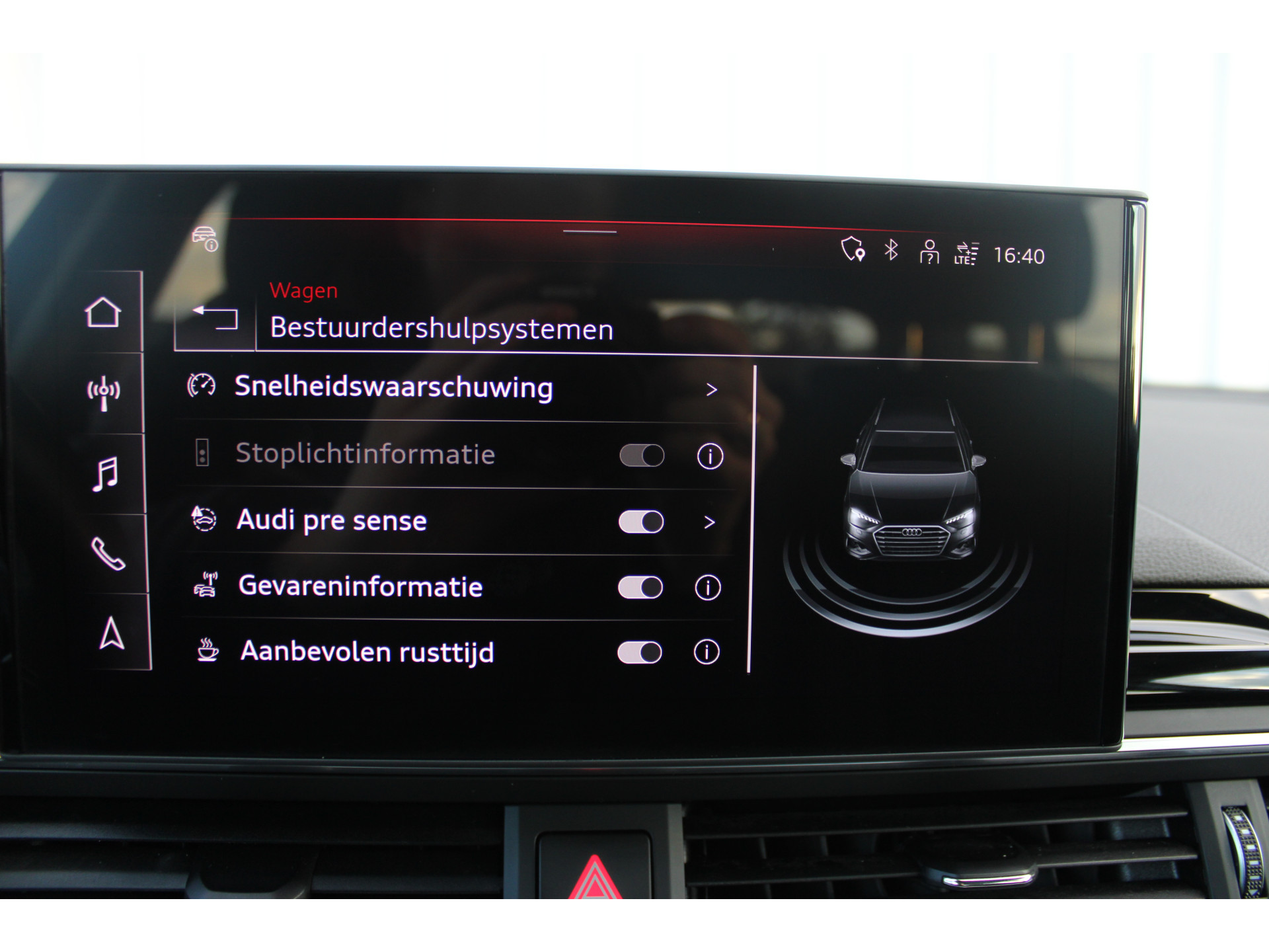 U geniet nog meer van het rijden met uw Audi omdat u wordt beschermd door intelligente veiligheidssystemen. De forward collision warning geeft een botswaarschuwing als een aanrijding dreigt met een voorligger. U bent mede dankzij hill hold functie, brake assist en bandenspanningcontrolesysteem steeds veilig onderweg.