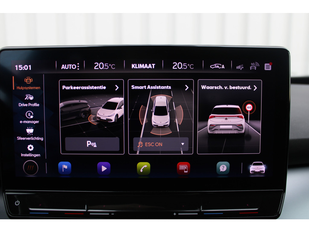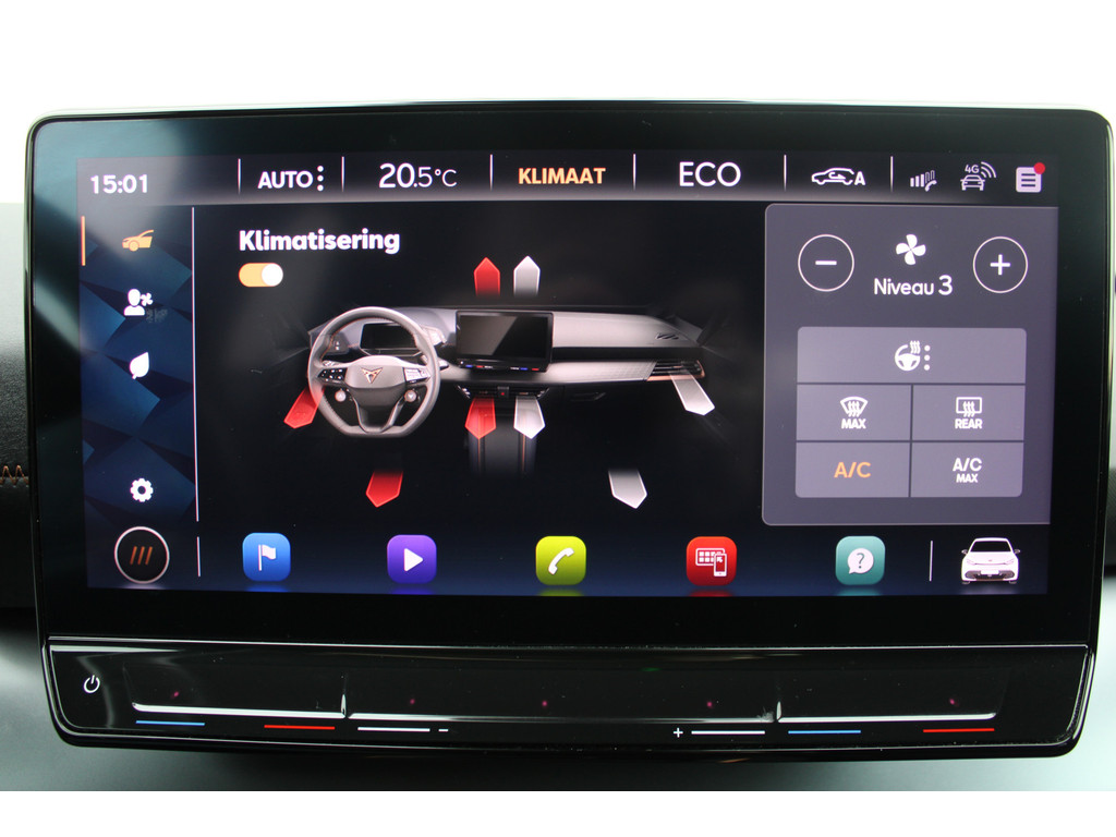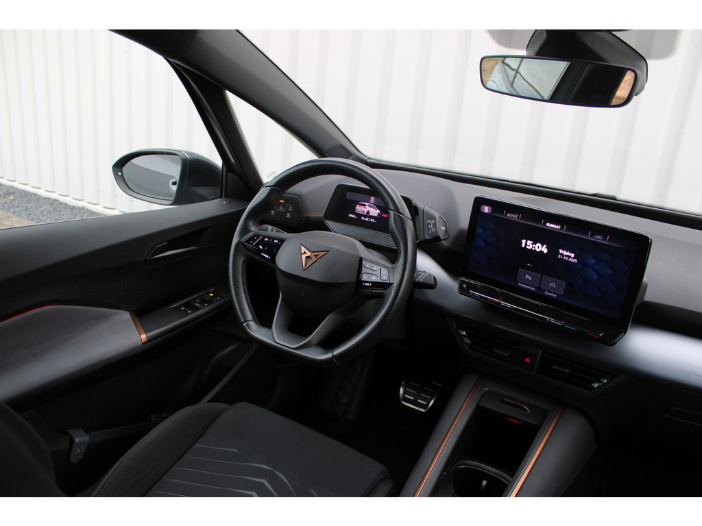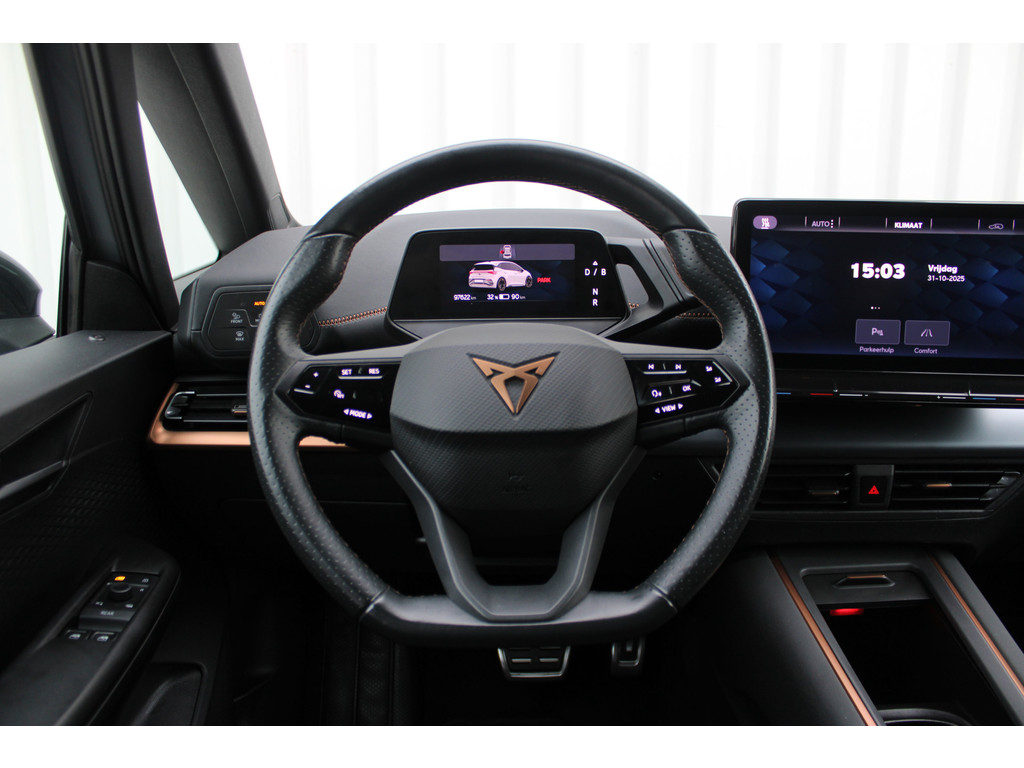 Voor een goed en duidelijk overzicht onderweg is het digitale dashboard uitermate slim ingedeeld. Pech of storing, altijd vervelend. Maar met Connected Services weet u direct wat eraan scheelt. En dus ook wat er moet gebeuren. U bedient het audio-installatiesysteem met DAB-radio via knoppen op het stuur of met uw stem. Zo kunt u steeds uw aandacht gericht houden op de weg. Automatische airconditioning verwarmt of koelt het interieur met een druk op de knop. Parkeersensoren ondersteunen u tijdens het in- en uitparkeren. U bent in deze CUPRA ook voorzien van regensensor, sportstuurwiel, automatisch dimmende binnenspiegel, isofix-aansluiting en centrale deurvergrendeling met afstandsbediening.