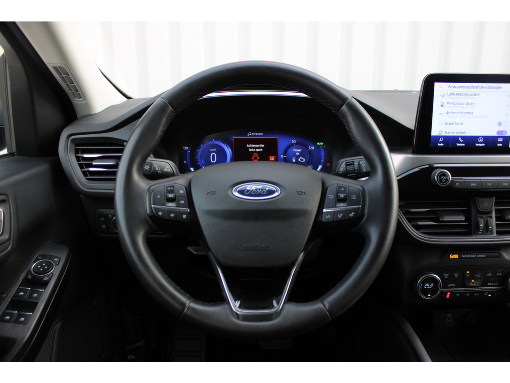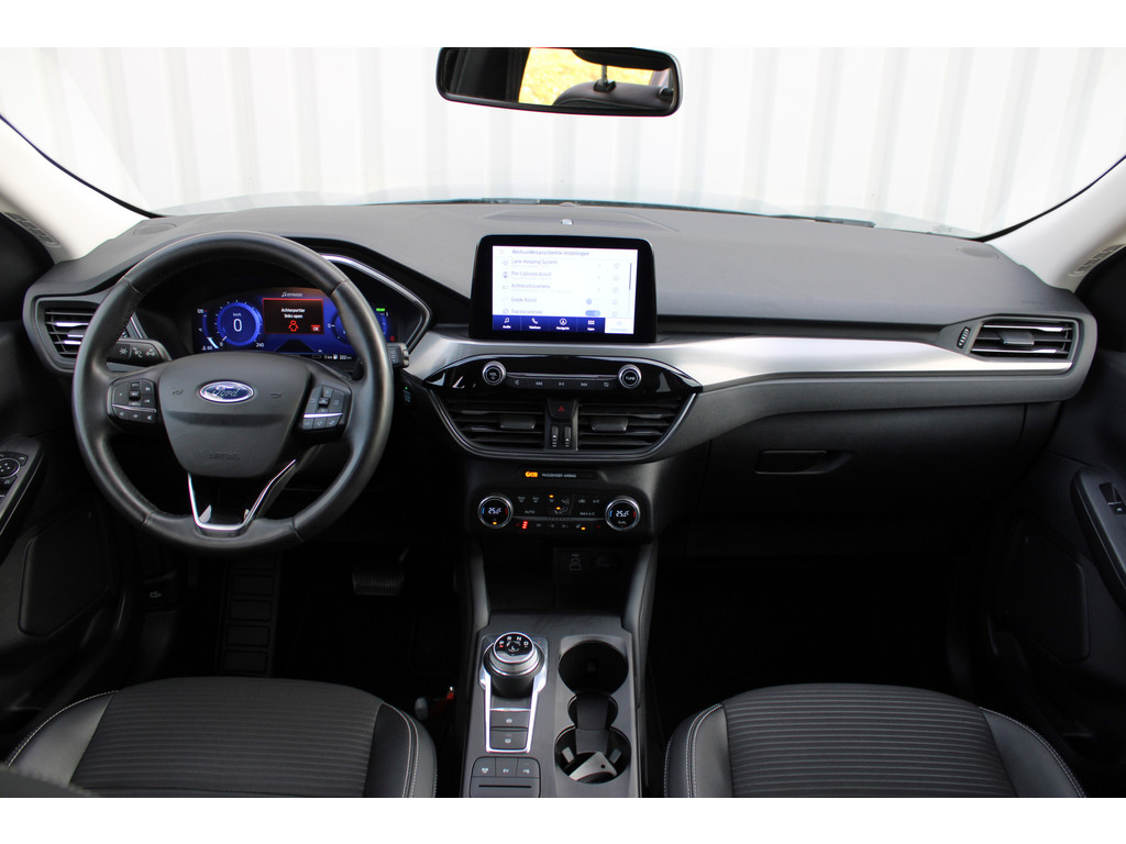 Met het digitale dashboard heeft u essentiële info in beeld. Altijd, overal. Bij het inparkeren hoeft u het laatste stukje niet te gokken: de parkeerhulp met achteruitrijcamera kijkt voor u uit. De auto is voorzien van een trekhaak en is een uitstekende caravantrekker. Connected Services zorgen ervoor dat de belangrijkste functies en data van de auto altijd en overal te checken zijn. Gewoon via de app op de smartphone. De achteropkomend verkeer waarschuwing bewaakt de afstand tot achterliggers en geeft een signaal als er te weinig ruimte is. Met dashboard met spraakbediening, full map navigatiesysteem, WIFI-hotspot, automatische airconditioning, DAB ontvangst en regensensor is deze Ford helemaal compleet.