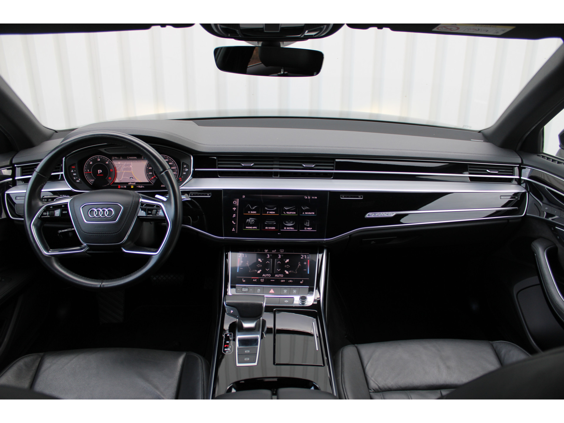 Zoals u mag verwachten van deze Audi A8 is hij uitgerust met een reeks aan actieve veiligheidssystemen. Het Lane-keeping systeem garandeert dat u zich niet onverhoeds buiten de lijnen van de rijstrook begeeft. Mindert een voorligger onverwachts te veel vaart, dan komt de forward collision warning in actie en waarschuwt meteen. Bovenop deze veiligheidsfeatures heeft deze Audi bovendien autonoom remsysteem en bandenspanningcontrolesysteem.