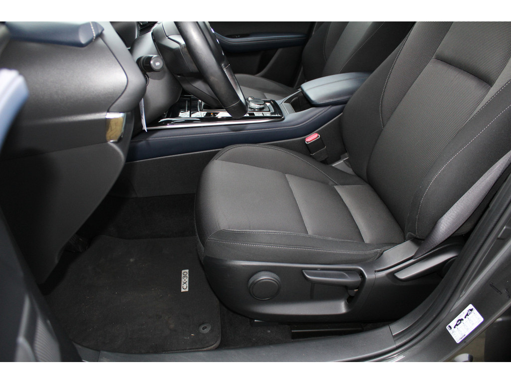 Het is een praktische avonturier, deze Mazda CX-30, een auto die in alle situaties zijn mannetje staat. Deze stoere auto wordt aangedreven door een benzinemotor en een automatische transmissie. U zit er altijd warmpjes bij door de stoelverwarming. Met een druk op de knop gaat de elektrische achterklep open. Bij de uitrusting van deze Mazda horen onder meer LED koplampen, dakspoiler, in delen neerklapbare achterbank en LED-achterlichten.