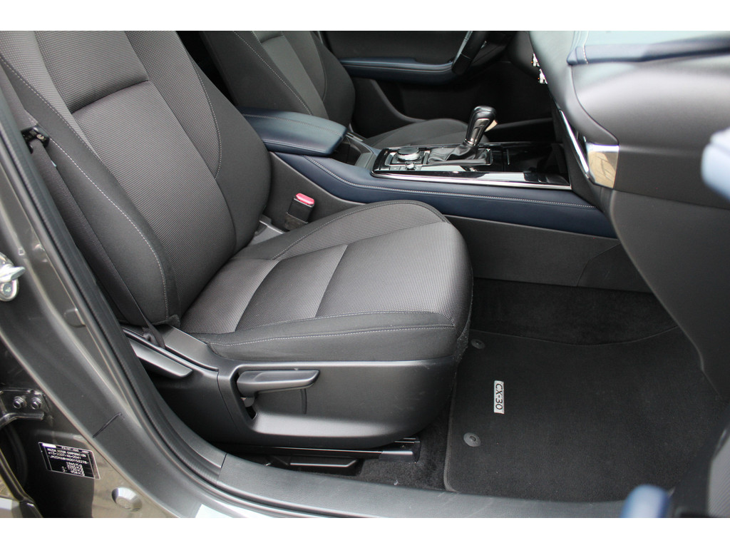 In de Mazda CX-30 heeft uw veiligheid en die van uw omgeving prioriteit. Verkeersbord-detectie herkent verkeersborden en toont deze op het instrumentarium van de auto. Ongemerkt buiten de rijstrook raken? Nee hoor, het Lane-keeping systeem waarschuwt en corrigeert. Ook als uw aandacht even verslapt, blijft de forward collision warning bij de wekker. Dreigt er een botsing met een voor- of tegenligger, dan waarschuwt het systeem direct. De auto is ook uitgerust met head-up display, dodehoekdetectie, hill hold functie, brake assist, vermoeidheidsherkenning en bandenspanningcontrolesysteem.