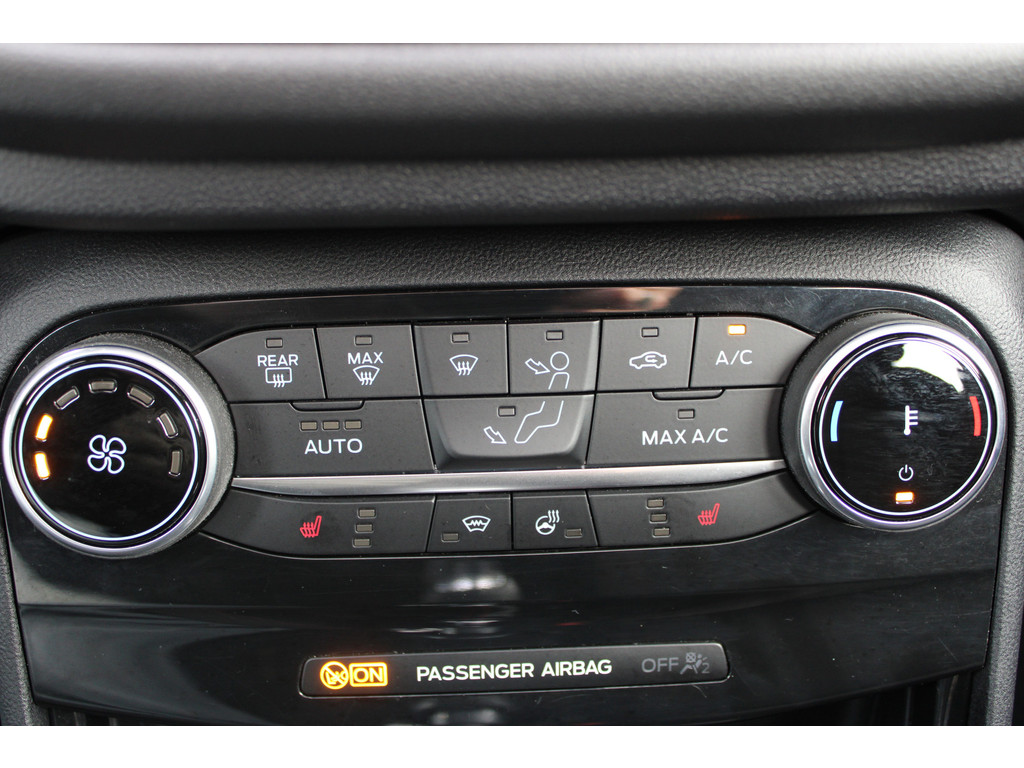 Deze Ford is voorzien van verschillende intelligente veiligheidsvoorzieningen. Ze kijken tijdens het rijden als het ware met u mee, ze signaleren potentieel gevaarlijke situaties en in een aantal gevallen kunnen ze ook ingrijpen. Tijdens de rit hebt u altijd een bijrijder, want de verkeersbord-detectie leest de borden langs de weg en projecteert ze voor u op het instrumentarium. Het Lane-keeping systeem registreert permanent of u binnen de lijnen van de rijstrook blijft; dwaalt u onbedoeld af, dan waarschuwt het systeem en corrigeert de koers. Forward collision warning helpt u om kop-staart aanrijdingen te voorkomen. Met voorzieningen als hill hold functie, brake assist en bandenspanningcontrolesysteem, bent u altijd veilig onderweg.