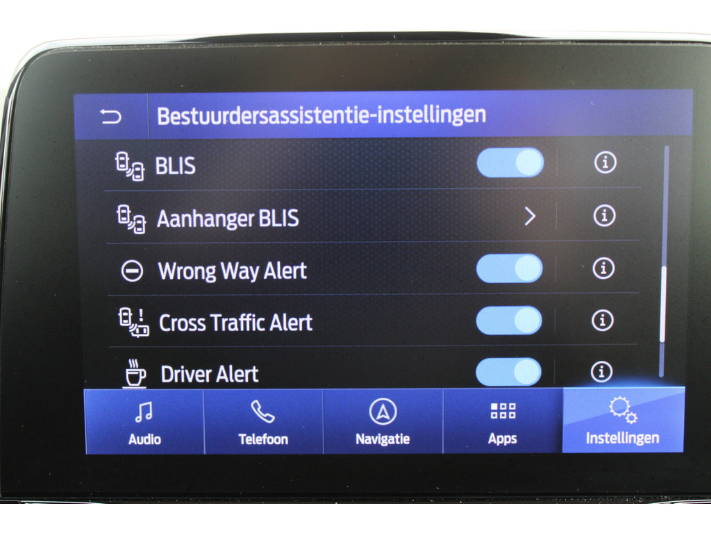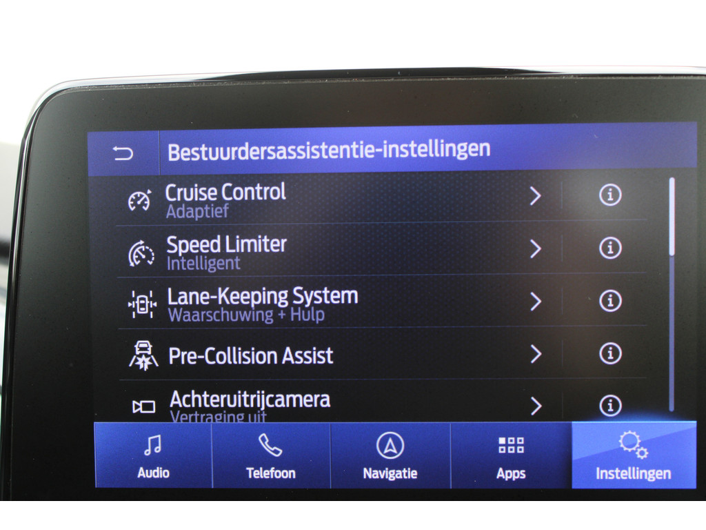 Deze Ford is voorzien van verschillende intelligente veiligheidsvoorzieningen. Ze kijken tijdens het rijden als het ware met u mee, ze signaleren potentieel gevaarlijke situaties en in een aantal gevallen kunnen ze ook ingrijpen. Tijdens de rit hebt u altijd een bijrijder, want de verkeersbord-detectie leest de borden langs de weg en projecteert ze voor u op het instrumentarium. Het Lane-keeping systeem registreert permanent of u binnen de lijnen van de rijstrook blijft; dwaalt u onbedoeld af, dan waarschuwt het systeem en corrigeert de koers. Forward collision warning helpt u om kop-staart aanrijdingen te voorkomen. Met voorzieningen als hill hold functie, brake assist en bandenspanningcontrolesysteem, bent u altijd veilig onderweg.