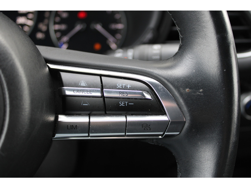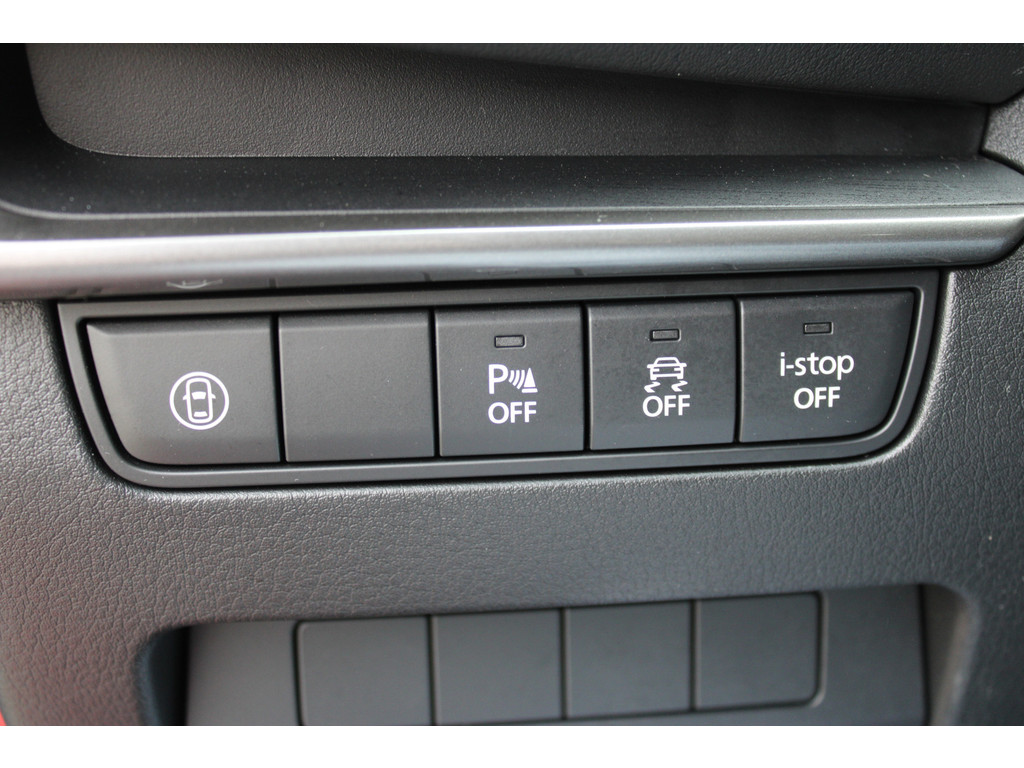 Adaptive cruise control houdt de ingestelde snelheid vast en houdt automatisch afstand tot uw voorligger. Met uw smartphone maakt u overal contact met de auto. Remote services geven direct inzicht in uiteenlopende functies en zijn op afstand te activeren. Het is veiliger om altijd uw ogen op de weg te houden en uw handen aan het stuur; daarom is dit voertuig uitgerust met een audiosysteem met DAB-ontvangst en een audio-navigatiesysteem dat kan worden bediend via het stuurwiel of spraakbediening. Liever gepiep dan gekraak? Dan zult u blij zijn met de aanwezige parkeersensoren! Het drukke verkeer eist onderweg al uw aandacht op. Daarom is het goed dat deze Mazda is voorzien van diverse systemen die u assisteren tijdens de rit. Een automatisch inschakelbare verlichting neemt het waar als het donker wordt of gaat schemeren, en schakelt dan automatisch de verlichting in. Op dezelfde manier "ziet" de regensensor de eerste spatjes regen en schakelt dan de ruitenwissers in, en als het harder gaat regenen zet hij de ruitenwissers ook in een snellere stand. Ook is de Mazda uitgerust met: airconditioning, lederen stuur, isofix-aansluiting, centrale deurvergrendeling met afstandsbediening, boordcomputer en lederen versnellingspook.