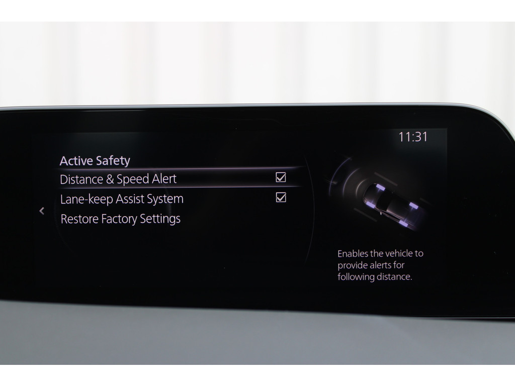 In de Mazda 3 heeft uw veiligheid en die van uw omgeving prioriteit. Dat de auto steeds meer taken van de bestuurder overneemt, merkt u bijvoorbeeld aan het systeem voor verkeersbord-detectie in deze Mazda. Het Lane-keeping systeem zorgt dat u mooi binnen de lijntjes blijft. Ongemerkt buiten de rijstrook komen is er niet meer bij. Het forward collision warning-systeem berekent via een sensor de afstand tot het verkeer vóór u en komt in actie als er gevaar bestaat van een botsing. In deze Mazda vinden we verder een head-up display, dodehoekdetectie, hill hold functie, brake assist, vermoeidheidsherkenning en bandenspanningcontrolesysteem.