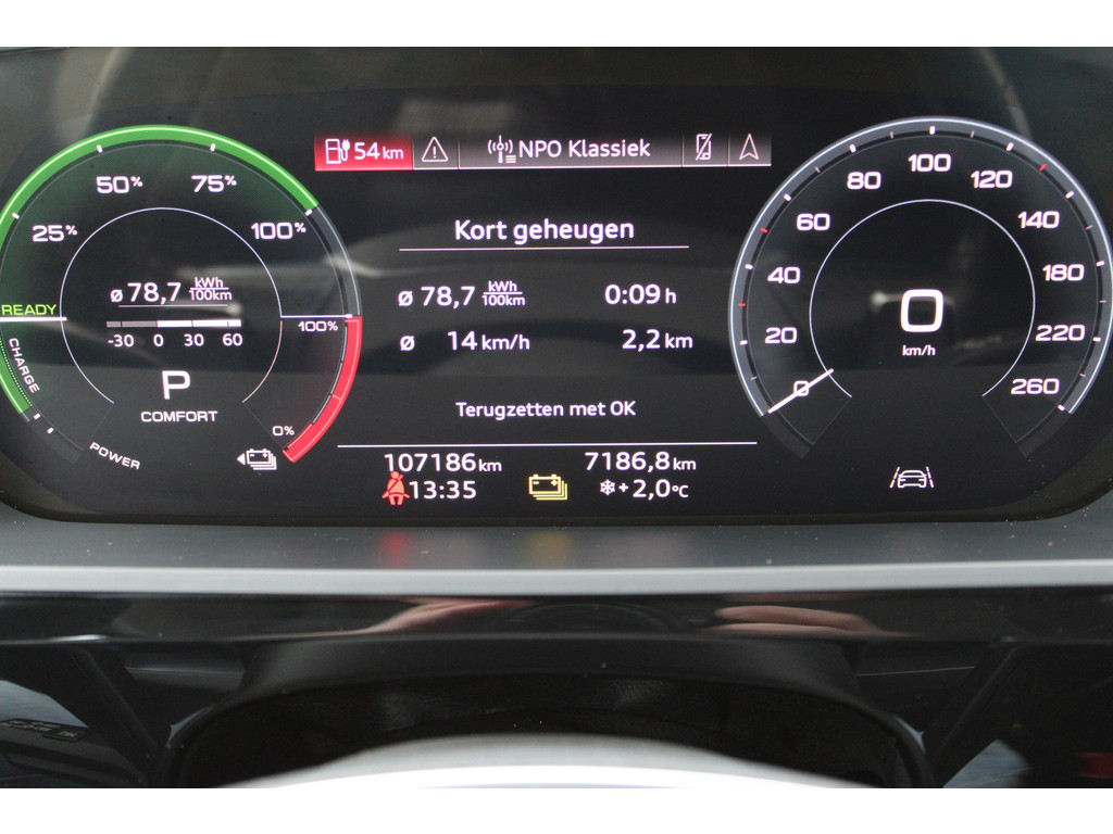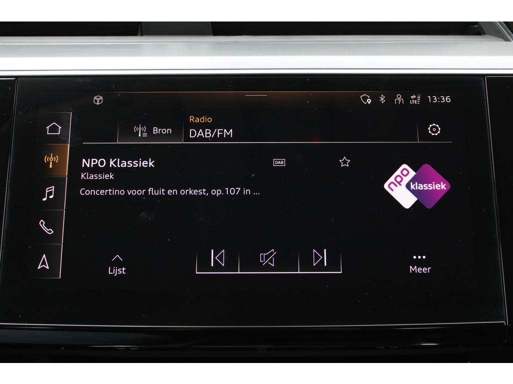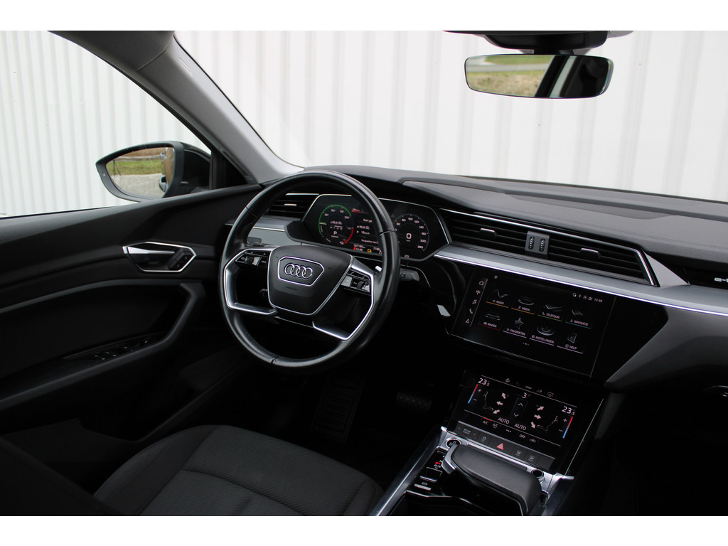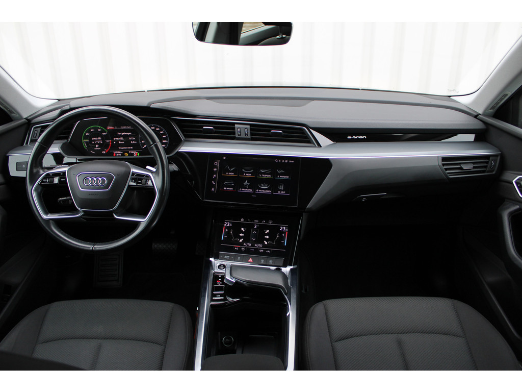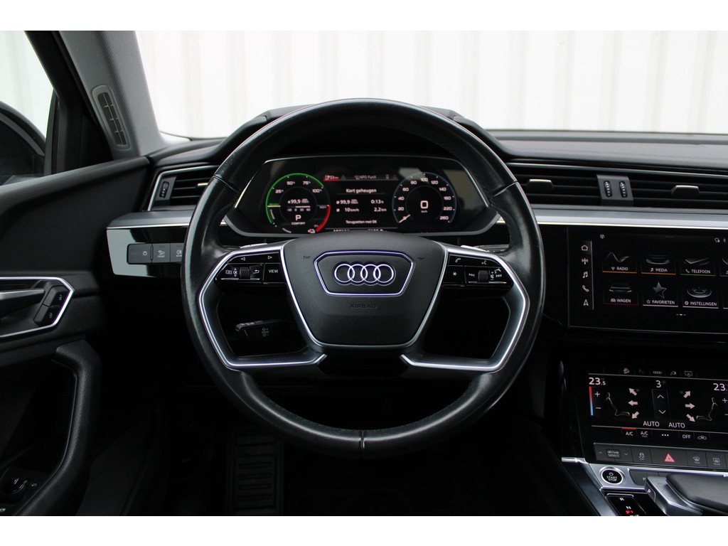 Natuurlijk brengt het digitale dashboard alle ritinformatie perfect in beeld. Maar ook communicatie, navigatie en tal van andere functies zijn permanent te volgen. Navigatie, onderhoudsstatus, vergrendeling, audio... de mogelijkheden van remote services zijn haast oneindig. Ook deze auto laat zich bedienen en analyseren via uw smartphone! Een goede veiligheidsvoorziening is de spraakbediening en stuurbediening voor belangrijke functies. De auto is natuurlijk voorzien van een full map navigatiesysteem en het audio-installatiesysteem biedt glasheldere geluidskwaliteit dankzij DAB-ontvangst. Het comfort wordt verhoogd door de aanwezige electronic climate control. U kunt bij het inparkeren natuurlijk niet aan alle kanten ogen hebben. Daarom is deze Audi e-tron Sportback voorzien van parkeersensoren! Ook WIFI-hotspot, schakelpaddles aan het stuur, regensensor, cruise control, keyless entry en automatisch dimmende binnenspiegel zijn aan boord.