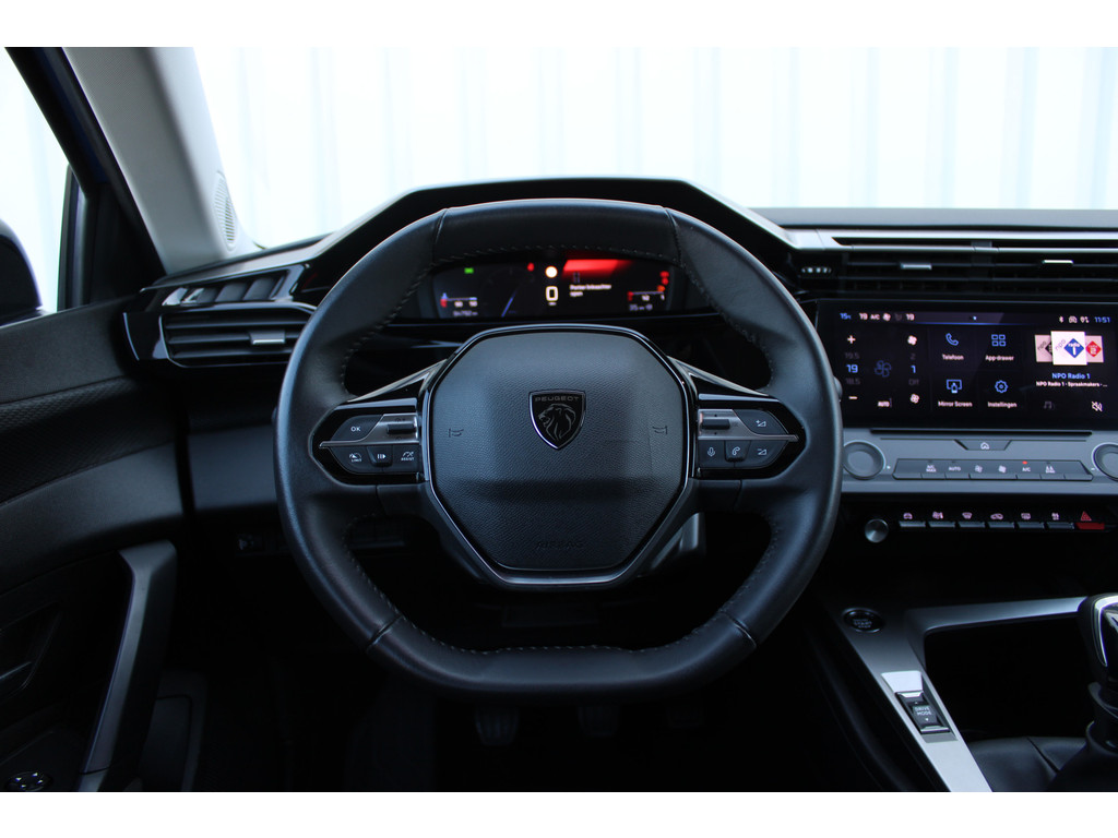 Praktisch, helder en uitermate handig is het digitale dashboard. Alle functies haarscherp in beeld! Het full map navigatiesysteem en het audiosysteem bedient u met knoppen op het stuur. Of het buiten nu warm is of koud, dankzij electronic climate control is het binnen altijd behaaglijk. Geen parkeervak is te klein dankzij de assistentie van de parkeersensoren. Achter het stuur van deze Peugeot bent u niet alleen. De auto kijkt als het ware met u mee tijdens de rit. De regensensor schakelt de ruitenwissers in als het nodig is en de automatisch inschakelbare verlichting doet de lichten voor u aan. De uitrusting van deze auto is met cruise control, lederen stuur, isofix-aansluiting en centrale deurvergrendeling met afstandsbediening behoorlijk compleet.