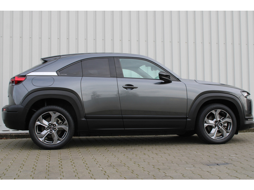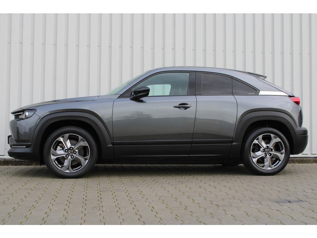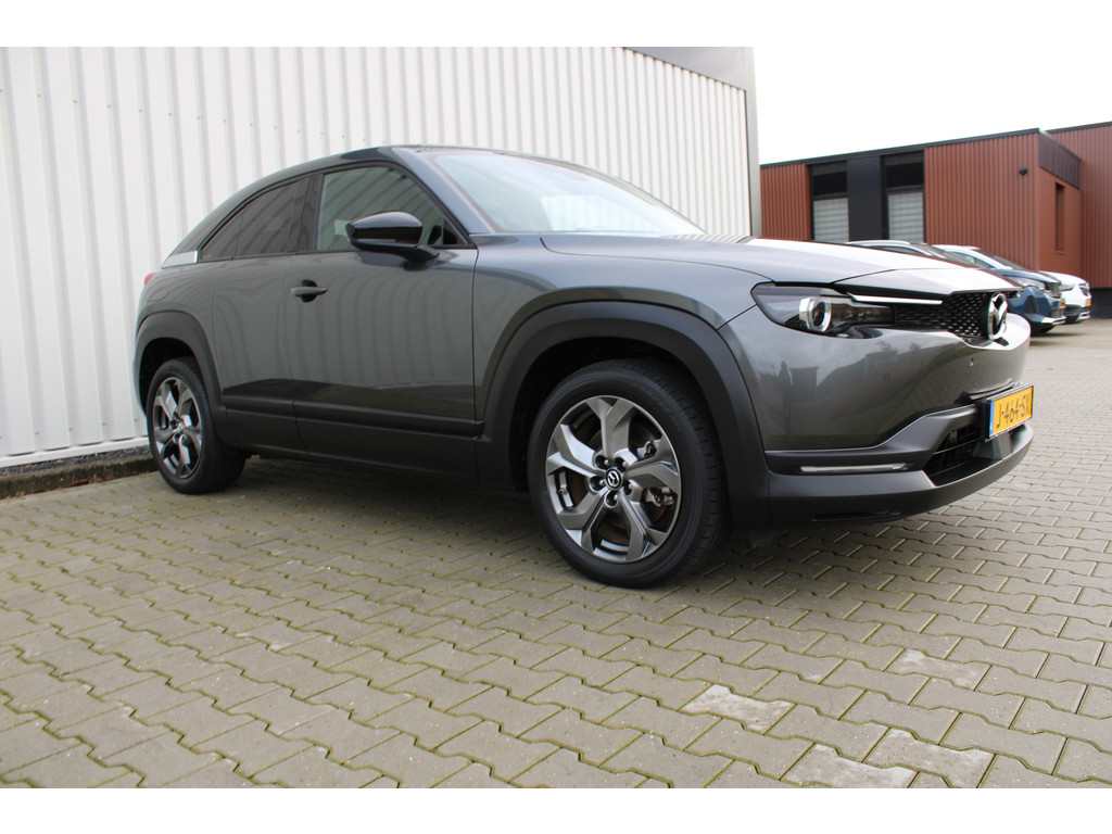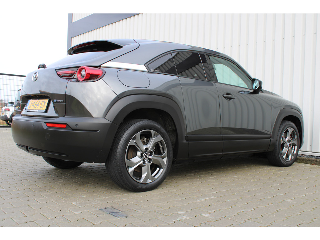Hightech elektronica en emissievrij rijden komen samen in de Mazda MX-30. Deze auto biedt een onvergelijkbare rijbeleving dankzij de volledig elektrische aandrijflijn. De fluisterstille elektromotor zorgt voor een serene rijervaring. De stoelverwarming maakt het interieur snel behaaglijk op koude dagen. Verder is de Mazda uitgerust met: 18 inch lichtmetalen velgen, LED koplampen, donker getint glas achter en in delen neerklapbare achterbank.