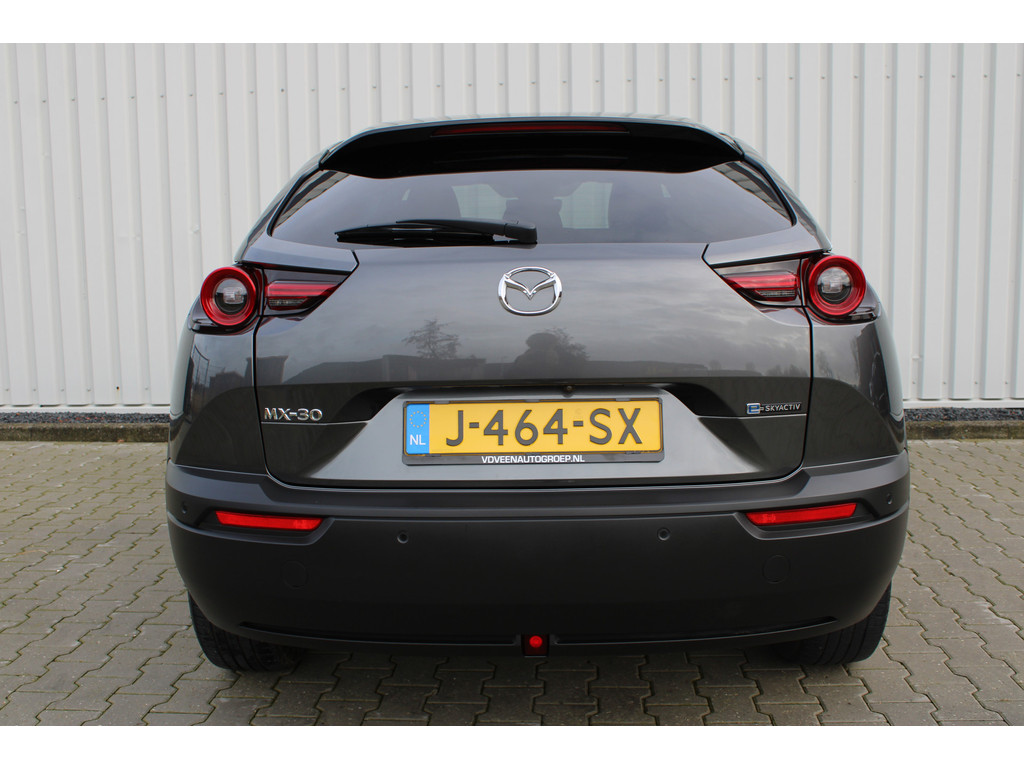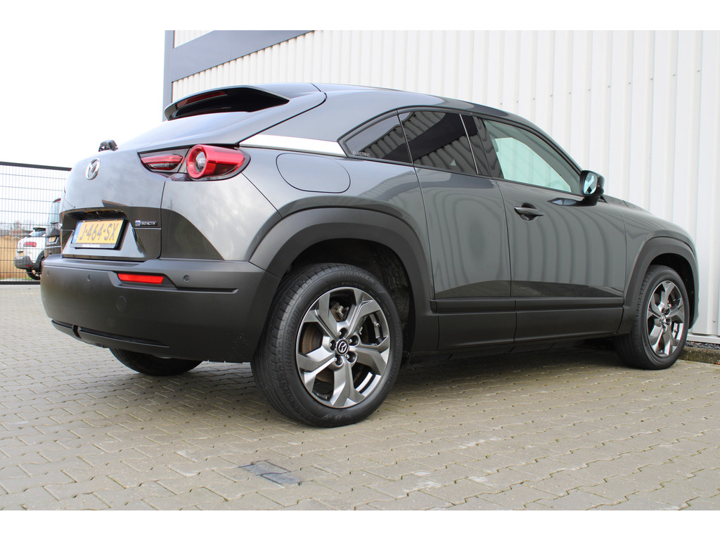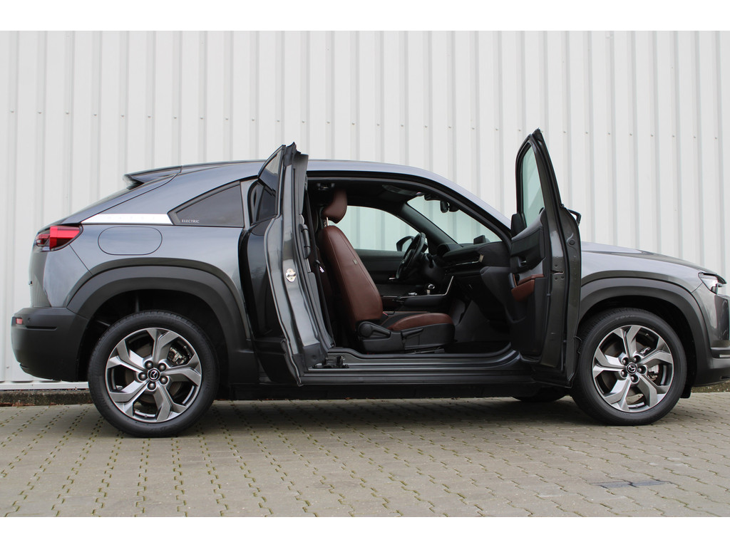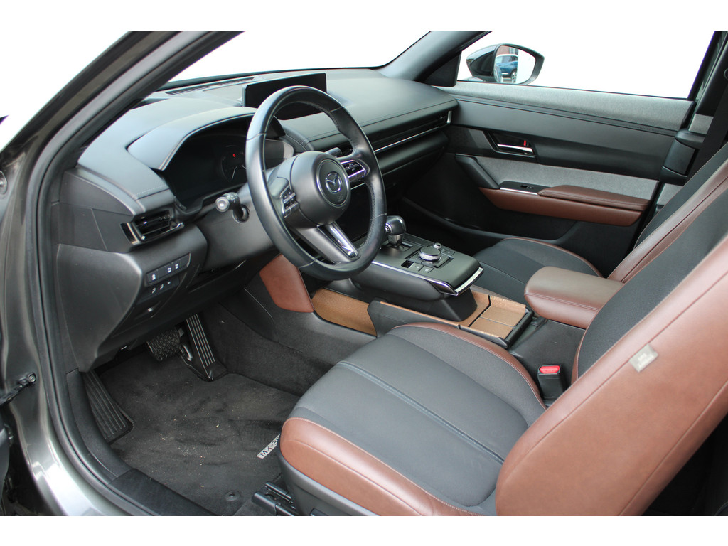 Hightech elektronica en emissievrij rijden komen samen in de Mazda MX-30. Deze auto biedt een onvergelijkbare rijbeleving dankzij de volledig elektrische aandrijflijn. De fluisterstille elektromotor zorgt voor een serene rijervaring. De stoelverwarming maakt het interieur snel behaaglijk op koude dagen. Verder is de Mazda uitgerust met: 18 inch lichtmetalen velgen, LED koplampen, donker getint glas achter en in delen neerklapbare achterbank.
