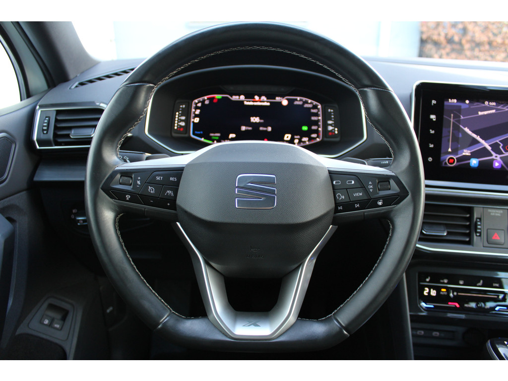 Duik in de digitale wereld van mobiliteit waar alles wat u nodig heeft voor een comfortabele en veilige rit, wordt geprojecteerd op het digitale dashboard. Achteruitrijden en inparkeren worden een eitje dankzij de achteruitrijcamera. Als u de adaptive cruise control inschakelt, regelt de auto zelf de snelheid en de afstand tot de auto voor u. Rijden-stilstaan, rijden-stilstaan. Niks is irritanter en vermoeiender dan filerijden. Daar heeft deze SEAT Tarraco een oplossing voor: de file assistent, die met radarmeting permanent het tempo aanpast op de voorligger. Zelfs als die stopt. Slimme spraakbesturing herkent gesproken opdrachten en voert ze uit. Ook connected drive services, full map navigatiesysteem, automatische airconditioning, schakelpaddles aan het stuur, DAB ontvangst en regensensor horen tot de voorzieningen op deze auto.